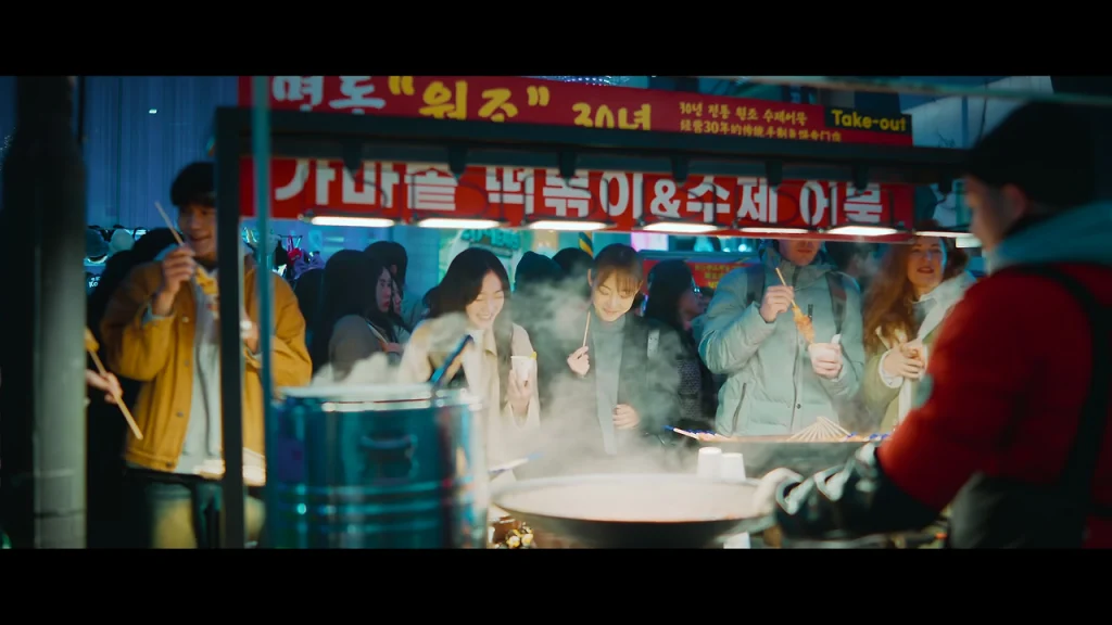 明洞の屋台グルメといえば、トッポッキ、キンパ、ホットク、チーズハットグ、タッカンジョン、焼き貝、エッグパン など種類がとても豊富。甘いものからスパイシーな軽食まで揃っているので、食べ歩きが好きな人にはたまらないスポットです。また、エリア一帯にはカフェやレストランも多く、ショッピングの合間に立ち寄るのにもぴったり。観光客向けの華やかさと、ローカルな屋台文化が絶妙に混ざり合った明洞は、ソウルらしさを手軽に感じられる場所で、ドラマのロケ地として登場したのもうなずける魅力があります。