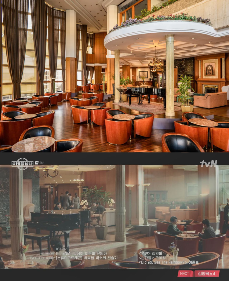 ドラマ『テプン商事』は、韓国の企業ドラマらしく都会的でスタイリッシュな雰囲気の中で撮影が行われました。ソウルでは、西大門区にあるスイスグランドホテル(Swiss Grand Hotel)が主要ロケ地の一つとして登場し、会長室や役員会議室など、財閥企業の華やかさを象徴するシーンが撮影されました。シックなインテリアと大きな窓から差し込む自然光が、ドラマの重厚なビジネスドラマらしい緊張感を引き立てています。
